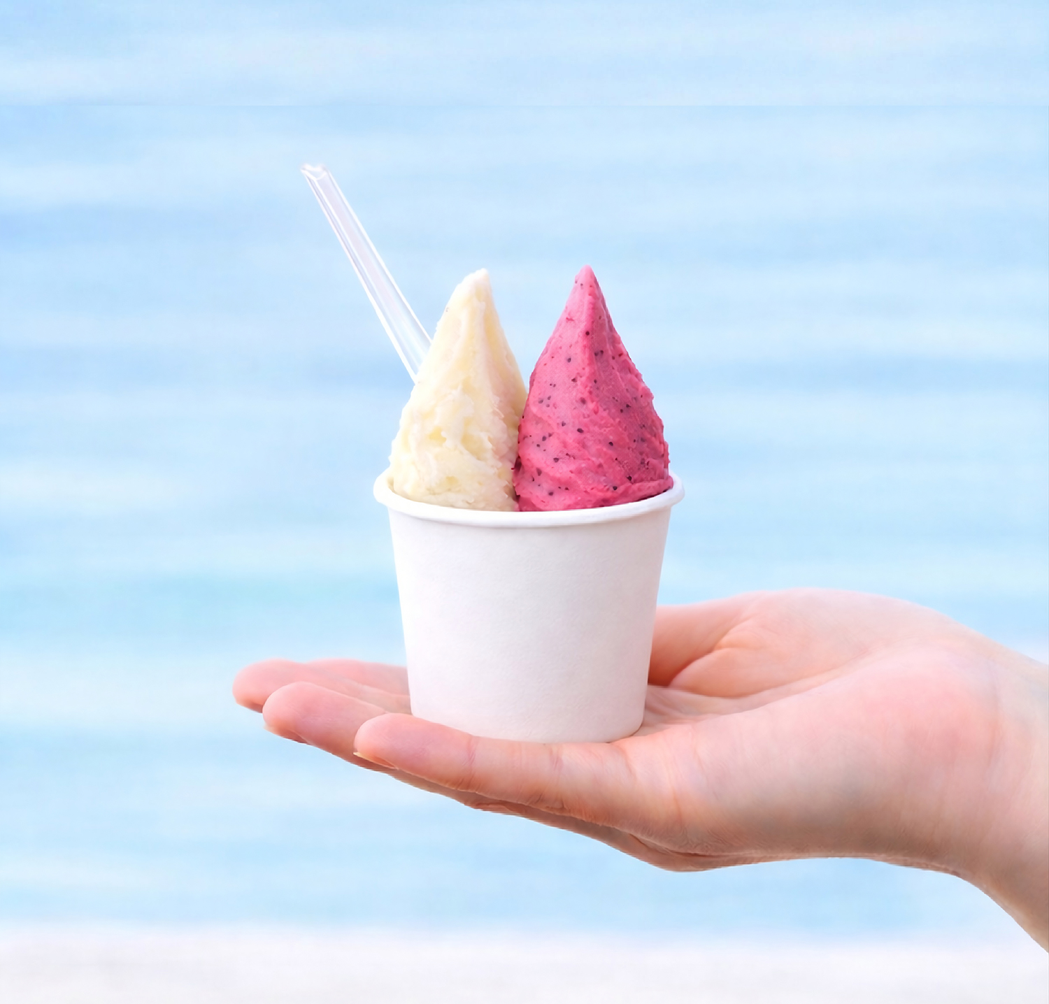 石垣島の人々に愛されているソウルドリンクで、子供の頃から慣れ親しんだ昔ながらの味。さっぱりとしたのど越しと甘さが特徴の乳酸菌飲料です。濃厚なミルクジェラートとの相性は抜群で、後味すっきり!